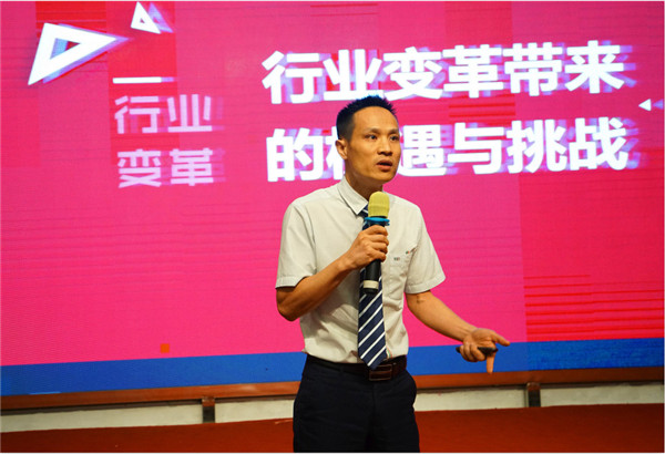 企业销售副总经理冼建堂致辞,首先他对远道而来的家人们表示热烈的欢迎,“学习力是第一生产力!”他希望家人们在这4天3夜的特训里,抛开自己的职务、身份,放空心态,用一名学生的身份全程投入学习,学有所成。