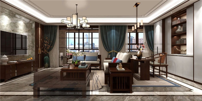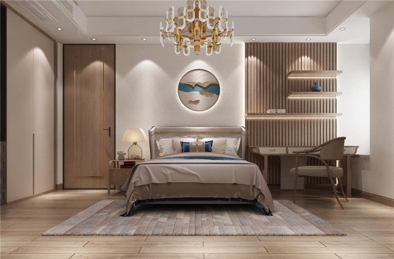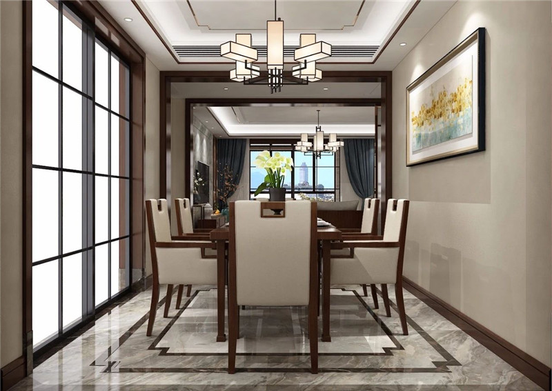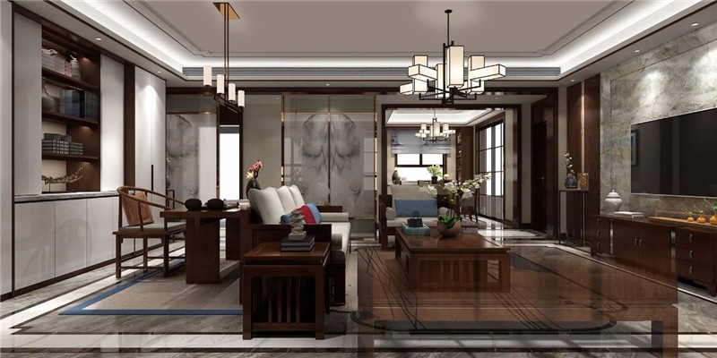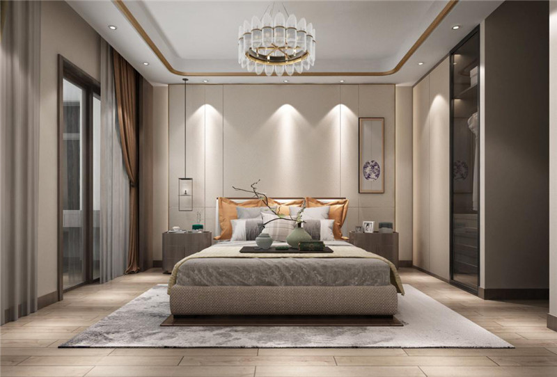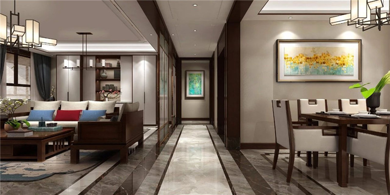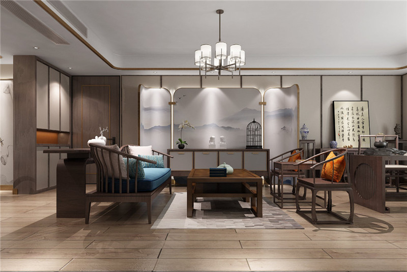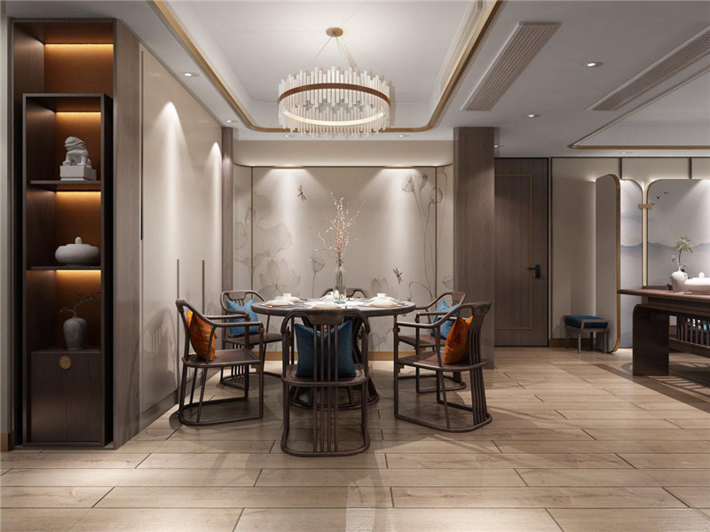 含蓄秀美的现代高贵中式风格,以现代的审美打造富有传统韵味的空间,采用对称式的空间布局,利用不同材质的纹理丰富视觉,富有东方山水韵味的山水画背景,格调高雅,简朴优美。空间以米色为基调烘托出和谐宁静的氛围,再以不同纹理、色彩及物料划分空间,将东方艺术涵蕴从色调的深浅中呈现出来。